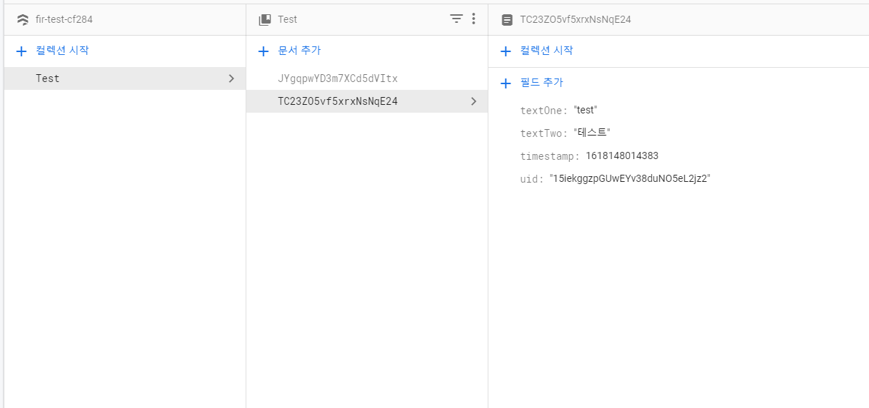 firestore를 추가해주고
