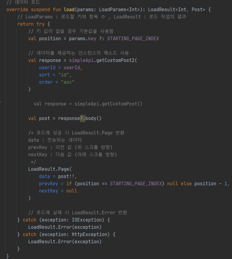 override suspend fun load(params: LoadParams<Int>): LoadResult<Int, Post> {