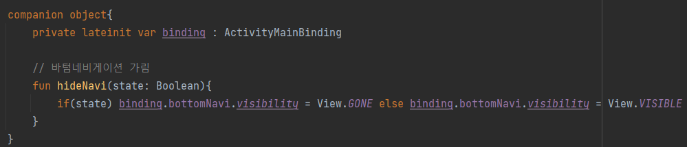 메인 액티비티에서 바텀 내비게이션을 숨기고 보여주는 메서드를 하나 작성해주고