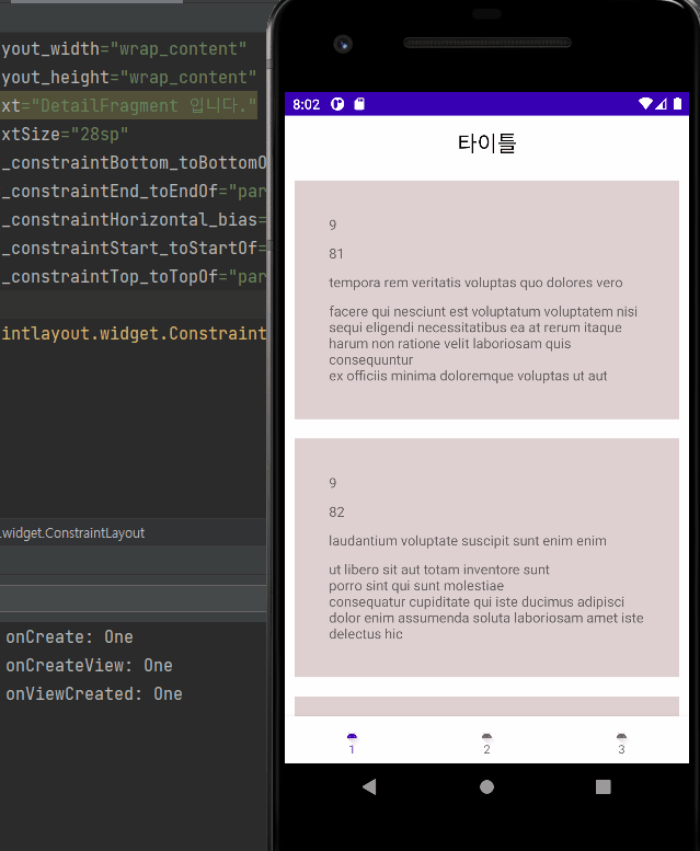로그에서 생명주기를 잘 보면 DetailFragment로 이동했을 때 onDestroyView 가 호출되고,